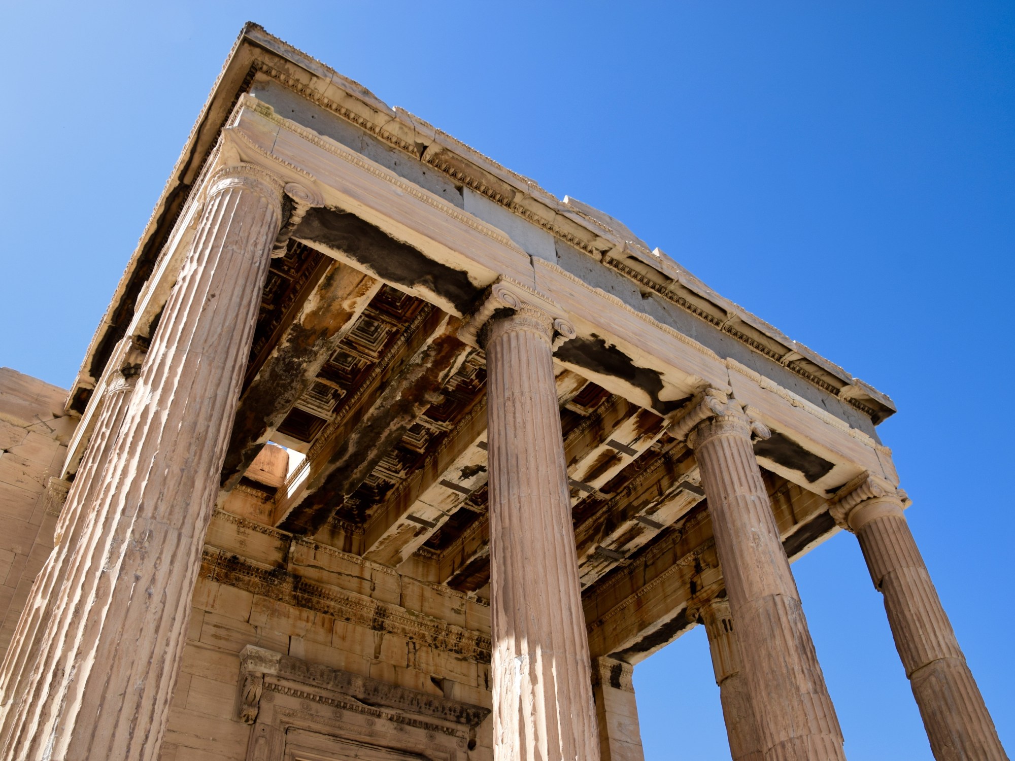 Likely the most famous caryatid (a sculpted female figure used as architectural support instead of a column) is part of the Acropolis. The Erechtheion is a temple dedicated to both Athena and Poseidon.